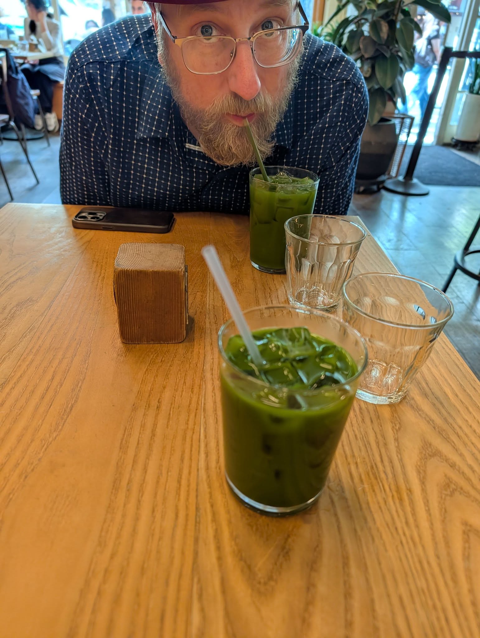 Drinking iced matcha